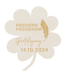 Prezent z okazji pasowania na ucznia/przedszkolaka - Drewniany Magnes Koniczyna