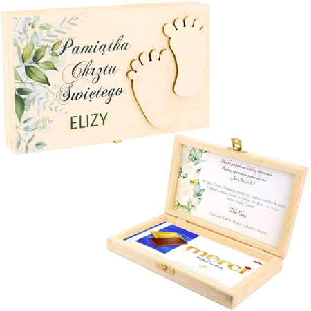 Drewniane pudełko ze stópkami to idealne rozwiązanie! Jest to wyjątkowy prezent, który będzie w przyszłości miłym wspomnieniem.