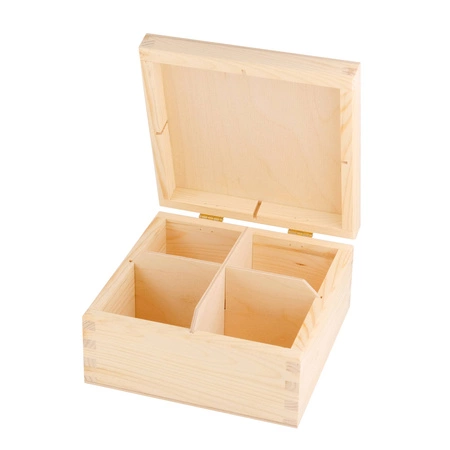 Pudełko z 4 przegrodami jest produktem wysokiej jakości, który świetnie prezentuje się w swoim naturalnym wydaniu, ale także może zostać poddany dalszej obróbce np. metoda decoupage, malowanie farbą, bejcowanie oraz zdobienia różnymi innymi technikami. Pudełko będzie idealnym opakowaniem na herbaty, drobiazgi. Sprawdzi się zarówno w kuchni, salonie jak i w garażu. Jest to też świetny element prezentu, który można podarować bliskiej osobie.