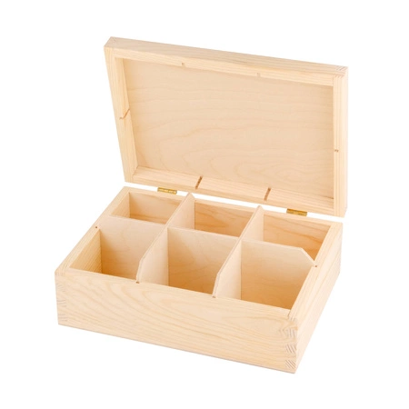 Pudełko z 6 przegrodami jest produktem wysokiej jakości, który świetnie prezentuje się w swoim naturalnym wydaniu, ale także może zostać poddany dalszej obróbce np. metoda decoupage, malowanie farbą, bejcowanie oraz zdobienia różnymi innymi technikami. Pudełko będzie idealnym opakowaniem na herbaty, drobiazgi. Sprawdzi się zarówno w kuchni, salonie jak i w garażu. Jest to też świetny element prezentu, który można podarować bliskiej osobie.