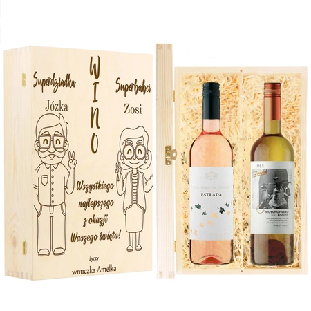 Prezent na Dzień Babci i Dziadka - Skrzynka na 2 wina