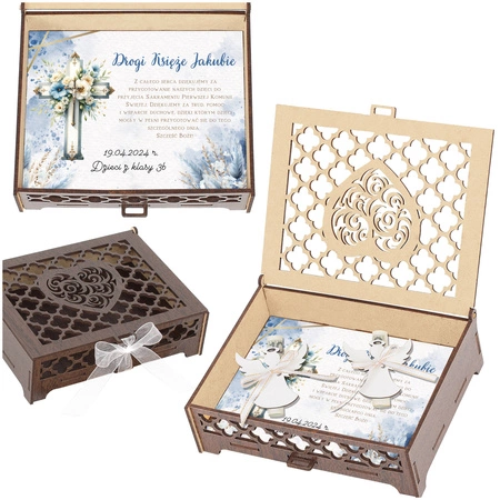 ⭐Oryginalne podziękowanie dla Księdza za przygotowanie do Pierwszej Komunii Świętej - drewniane pudełko na pieniądze z życzeniami i personalizacją!