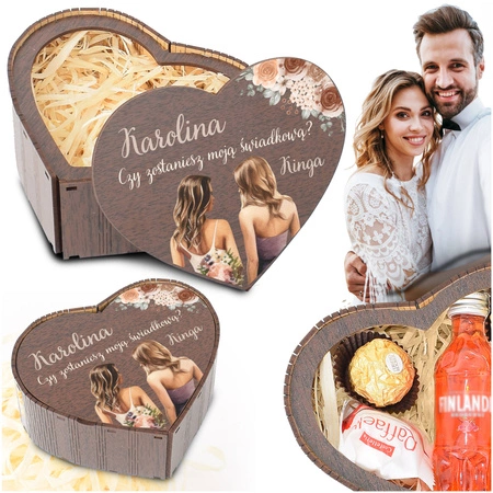 ⭐Oryginalny upominek dla świadkowej - drewniane pudełko na z personalizowanym nadrukiem i wełną drzewną!