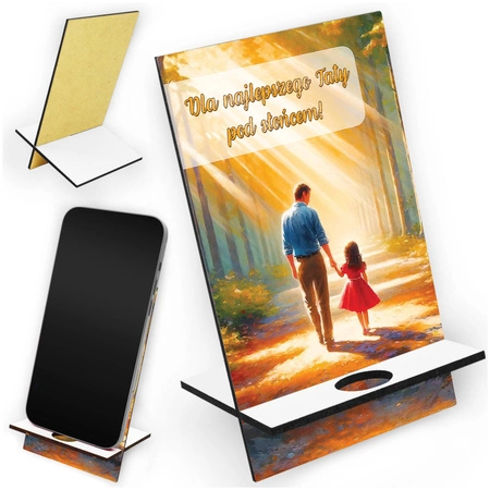 ⭐ Praktyczny prezent dla Taty - Drewniana podstawka pod telefon z nadrukiem