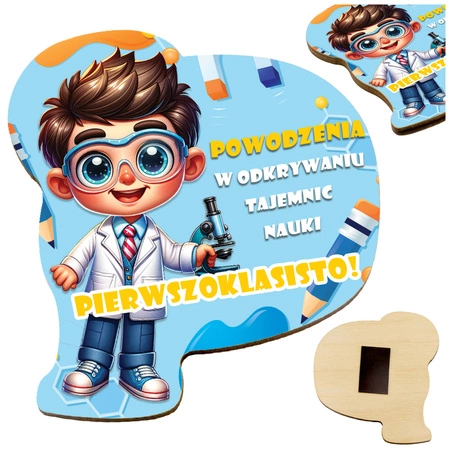 ⭐Oryginalny prezent z okazji pasowania - Drewniany magnes z nadrukiem