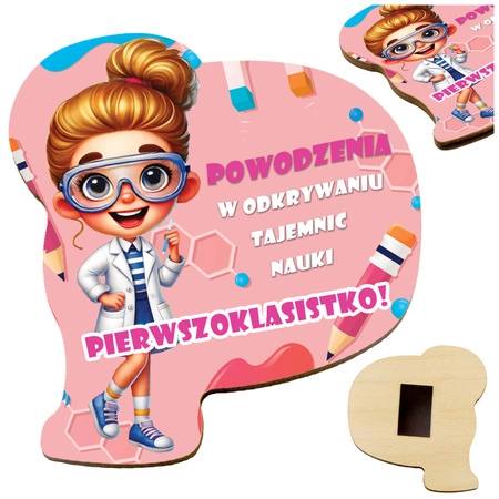⭐Oryginalny prezent z okazji pasowania - Drewniany magnes z nadrukiem