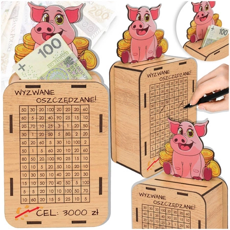 Stylowa drewniana skarbonka, wykonana z najwyższej jakości materiałów, to nie tylko praktyczny sposób na oszczędzanie, ale także wyjątkowy prezent dla bliskich. Dzięki możliwości wykreślania oszczędności, każdy krok w stronę celu staje się motywującą przyjemnością!