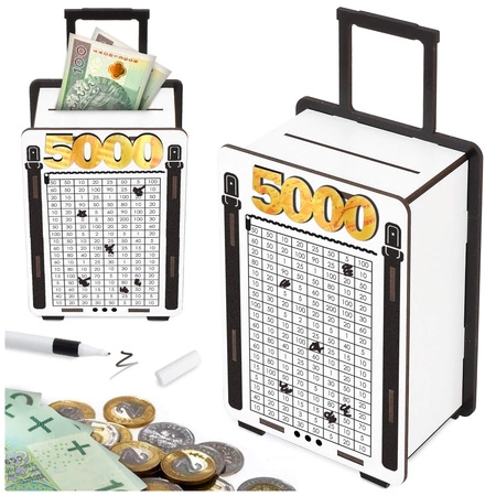 ⭐Oryginalny prezent - Skarbonka Wykreślanka 5000 zł w kształcie walizki!