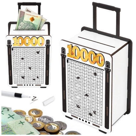⭐Oryginalny prezent - Skarbonka Wykreślanka 10000 zł w kształcie walizki!