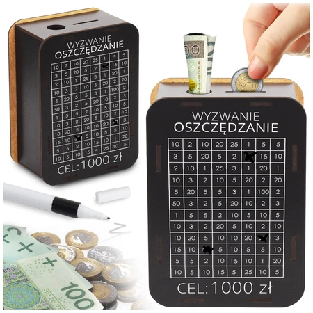⭐Oryginalny prezent - Skarbonka Wykreślanka z celem 1000 zł!