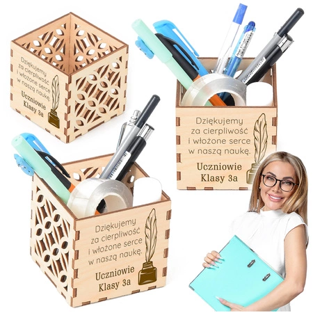 Drewniany przybornik z grawerem wywoła uśmiech na twarzy każdego nauczyciela, wychowawcy, dyrektora oraz innych pracowników placówki!. Ten upominek będzie zarówno praktyczny, jak i symboliczny oraz podkreśli znaczenie okazji.