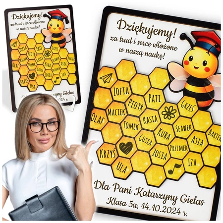 Stylowa drewniana ramka wykonana z najwyższej jakości materiałów to wyjątkowy prezent dla wychowawcy, nauczyciela lub innego pracownika szkoły! Dzięki miejscu na podpisy dzieci produkt nie tylko otrzyma wyjątkowy akcent, ale również będzie przywoływał piękne wspomnienia na lata!
