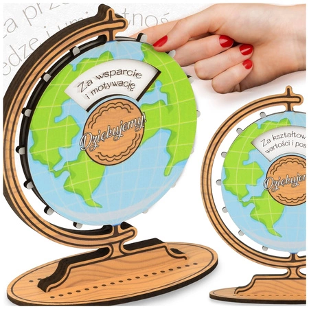 Statuetka w kształcie globusu wywoła uśmiech na twarzy każdego nauczyciela, a dzięki wygrawerowanym podziękowaniom na obracanej zębatce będzie przywoływać piękne wspomnienia na lata. Jest to piękny gest docenienia za trud i serce wkładane w nauczanie.