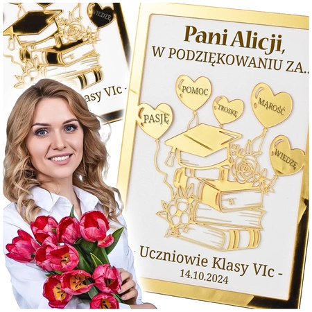 ⭐Oryginalny upominek z okazji Dnia Nauczyciela - Obraz z złotą, lustrzaną ramką i personalizowanym grawerem!