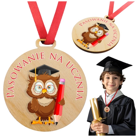 ⭐Oryginalny prezent z okazji pasowania - Drewniany medal z żywym nadrukiem