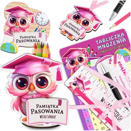 ⭐ Praktyczny zestaw z okazji pasowania na ucznia dla dziewczynki - Drewniane produkty z uroczym, żywym nadrukiem!