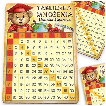 Drewniana tabliczka mnożenia to piękna i trwała pamiątka pasowania na ucznia, zaprojektowana z myślą o pierwszym dniu szkoły. Wykonana z drewnianej płyty (11 × 15 cm, grubość 0,3 cm), ozdobiona pełnokolorowym nadrukiem łączy funkcję edukacyjną z estetyką i ekologicznym designem. Lekka i kompaktowa − łatwo mieści się w tornistrze czy na biurku. Tabliczka stanowi praktyczne narzędzie do codziennej nauki oraz wzruszającą pamiątkę, która będzie towarzyszyć dziecku przez lata. Idealny upominek od wychowawców, rodziców czy dziadków, podkreślający wagę początku przygody szkolnej.