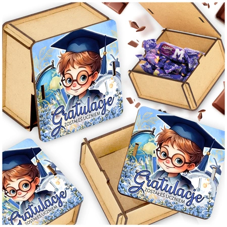 Eleganckie pudełko z drewnianej płyty z barwną, trwałą grafiką – stworzone jako pamiątka pasowania na ucznia lub rozpoczęcia roku szkolnego. Naturalny materiał, staranne wykonanie i kompaktowy format sprawiają, że to praktyczny drobiazg na słodkości, drobne upominki i szkolne skarby. Gładkie krawędzie i solidna konstrukcja gwarantują estetykę na lata, a pełnokolorowy nadruk pozostaje wyrazisty i odporny na blaknięcie. Idealne dla nauczycieli, wychowawców i rodziców, którzy chcą podkreślić wyjątkowość pierwszych szkolnych chwil.