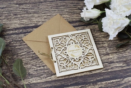 Naturalny charakter drewna pasuje do każdego wnętrza dzięki czemu kartka może stanowić element dekoracyjny.