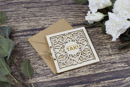 Naturalny charakter drewna pasuje do każdego wnętrza dzięki czemu kartka może stanowić element dekoracyjny.