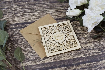 Naturalny charakter drewna pasuje do każdego wnętrza dzięki czemu kartka może stanowić element dekoracyjny.