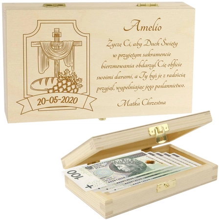 Personalizowane zamykane pudełko na pieniądze - Prezent na Bierzmowanie