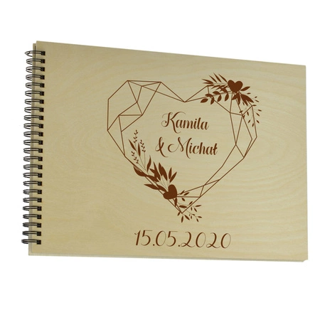 Album z drewnianą, spersonalizowaną okładką oraz miejscem na życzenia i podpis stanowi ciekawą alternatywę dla kwiatów i butelki wina!