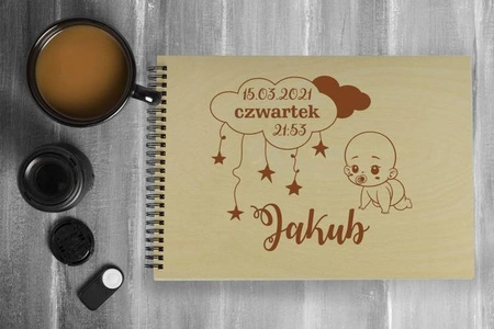 Naturalny album poziomy z personalizowaną okładką - Metryczka