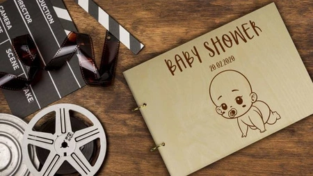 Naturalny album poziomy z personalizowaną okładką - Prezent na Baby Shower