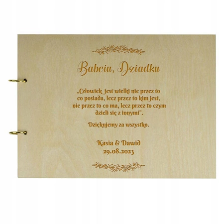 Gdy słowo "dziękuje" to za mało warto sięgnąć po niecodzienny album. Piękno drewnianej okładki ze spersonalizowanym tekstem z pewnością zostanie docenione przez obdarowanych. Warto również pamiętać, że album najlepiej prezentuje się po brzegi wypełniony zdjęciami.