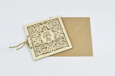 Unikatowy produkt w postaci drewnianej kartki zapakowanej w craftową kopertę. Zawiera piękne życzenia i jest świetną alternatywą do standardowej papierowej kartki.