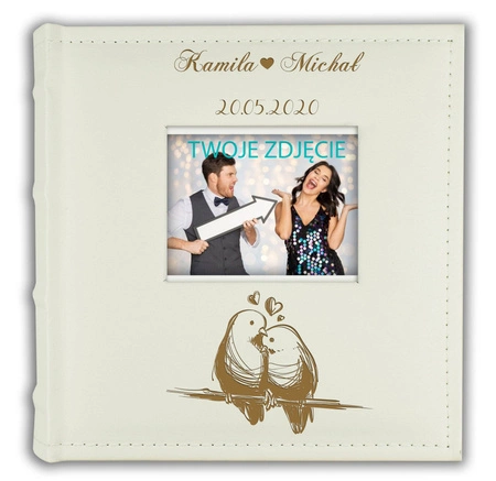 Album posiada okienko z pleksiglasu z miejscem na dowolne zdjęcie (np. zdjęcie świętującej pary). Standardowo jest tam włożone eleganckie zdjęcie z czerwoną różą (takie jak na fotografii powyżej).