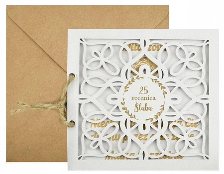 Unikatowy produkt w postaci drewnianej kartki zapakowanej w craftową kopertę. Zawiera piękne życzenia i jest świetną alternatywą do standardowej papierowej kartki.