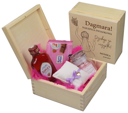 Drewniane pudełko z grawerem - idealny prezent dla świadkowej lub świadka.