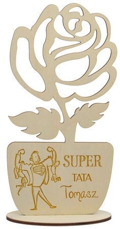 Drewniana róża z grawerem jest świetnym pomysłem, aby sprawić radość Twojemu Tacie! Jest to piękny prezent, który zostanie w pamięci na długi czas.