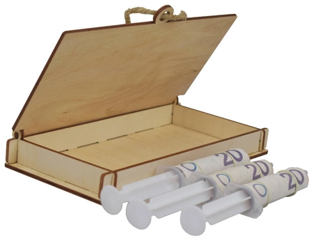 Drewniane, grawerowane pudełko na pieniądze - Zastrzyk gotówki na nowe mieszkanie
