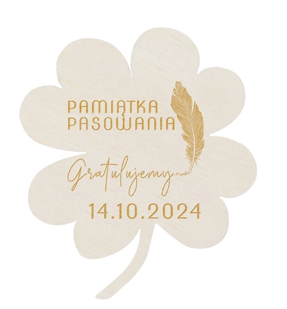 Prezent z okazji pasowania na ucznia/przedszkolaka - Drewniany Magnes Koniczyna