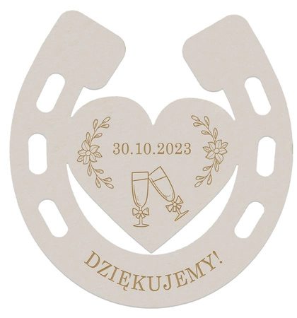 Prezent dla Gości Weselnych - Drewniany Magnes Podkowa