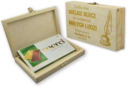 Drewniane pudełko na czekoladę z okazji Dnia Nauczyciela