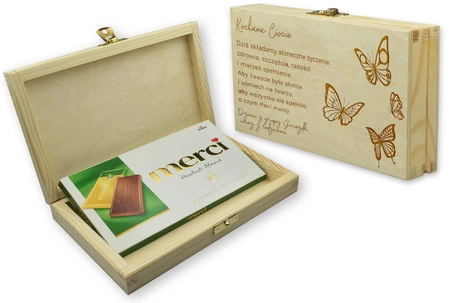 Drewniane pudełko na czekoladę - podziękowanie dla przedszkolanki!